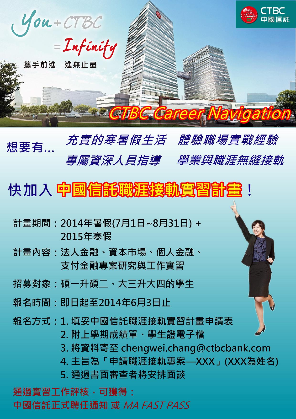 2014年度中國信託「職涯接軌計畫」現在開跑!