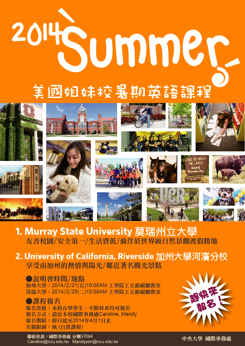 「2014美國姐妹校暑期英語課程」,歡迎學生們踴躍參加,謝謝。